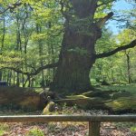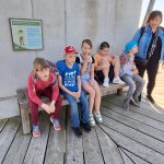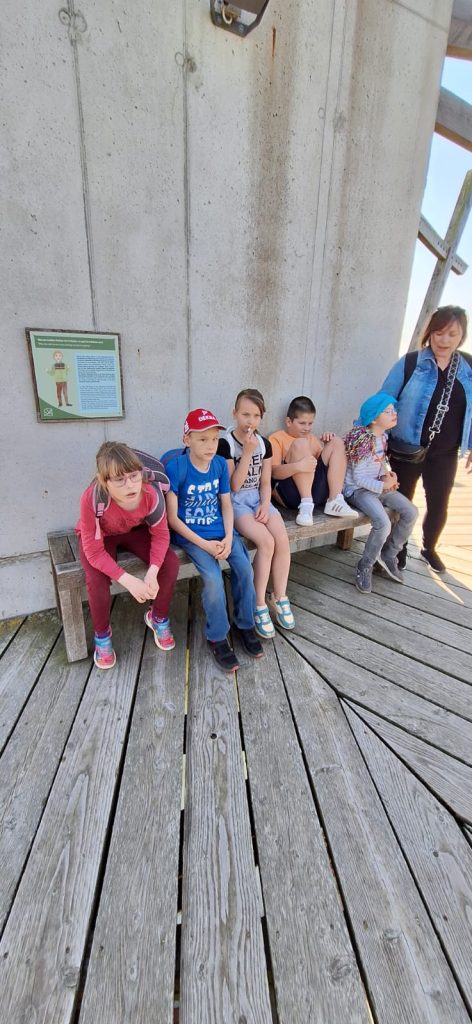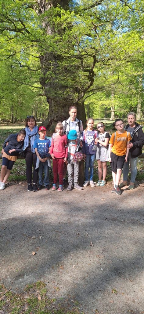 Dem Himmel ganz nah fühlte sich die Reuterklasse am 2.5.2024 als sie sich an ihrem Wandertag zum Naturpark „Ivenacker Eichen“ bis nach ganz oben auf den Baumwipfelpfad wagte. Das erforderte von einigen Schülerinnen und Schülern sehr viel Mut, denn in einer Höhe von über 30 Metern waren zuvor nur wenige von uns. Das Wetter meinte es besonders gut mit uns und so konnten wir den leichten Wind in den Blättern rauschen hören und bei strahlendem Sonnenschein den herrlichen Blick über den Ivenacker See genießen. Anschließend wanderten wir zu den Hudeschweinen und dem Damwild. Es war spannend, die Tiere zu beobachten, die überhaupt keine Angst vor uns zeigten. Spannend fanden wir auch die Ausstellung im Barockpavillion. Sich einmal wie ein Eichhörnchen in seinem Kobel zu fühlen oder den Vogelstimmen zu lauschen, bereitete uns sehr viel Freude. Nicht weit entfernt entdeckten wir einen kleinen Spielplatz, auf dem wir alle klettern und toben konnten. Am Waldcafé gab es zum Mittag je nach Wunsch einen leckeren Wildhotdog, eine Wildbratwurst oder Bockwurst mit Kartoffelsalat. Das war echt lecker, genauso wie das Eis zum Nachtisch. Mit vollen Bäuchen und vielen schönen Erlebnissen im Gepäck machten wir uns auf den Rückweg. Das war echt ein schöner Tag.